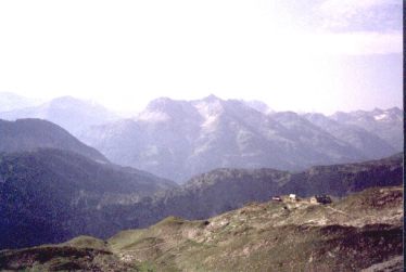 Doch es begann zu regnen und ich nehm meine Füsse in die Hände und erreichte das trockene Auto in nur 15 Min. Dort winkte ich noch einem älteren Bergteiger zu, der die Tour ebenfalls abbrach. Im Auto überlegte ich mir was ich mit diesem Tag wohl anfangen soll, so weit von zu Hause weg, allein und verlassen. Doch Gott erhörte mich und der Himmel riss in einem Tempo auf, wie ich es sonst nur aus Zeitraffern im Fernsehen gewohnt bin. Voll Freude über diesen Wink von Gott hüpfte ich nocheinmal um 8.00 Uhr vorbei an zwei Steinbrucharbeitern hinauf zur "Unteren Wiesalpe". In Windeseile vorbei an der "Inneren Wiesalpe" entlang des Baches. In meinem gegenwertigem Adrenalinstoss konnte ich es nicht erwarten, die "Fluchtalpe" zu erreichen, aber sie kam und kam nicht, doch die nächste Biegung gab die Hütte frei. Mit leichten Ermüdungserscheinungen lief ich weiter zur "Hinteren Wildenalpe". Doch mein hohes Anfangstempo wurde mir zum Verhängnis und so kam der erste Wadenkrapf, den ich mit einer kurzen Rast und etwas Eistee überwand. Und wie immer nach ca. 2 Std. sprach der Schweinehund auf meiner Schulter zu mir: "Warum machst du da hier eigentlich. Könntest es so schön haben und dich nicht abquälen." Aber ich wusste es gab nur einen Grund hierfür (der wird aber aus datenschutzrechtlichen Gründen hier nicht genannt). Also wanderte ich weiter um die Kemptner Scharte zu erlangen. Doch diese wollte nicht kommen, obwohl ich vor jeder Rechtsbiegung hoffte, dass sie kommt. Dies war aber erst nach ca. 6 Rechtskurven der Fall und so erreichte ich sie um 11.00 Uhr völlig erschöpt und mit Schmerzen in meinen Waden.